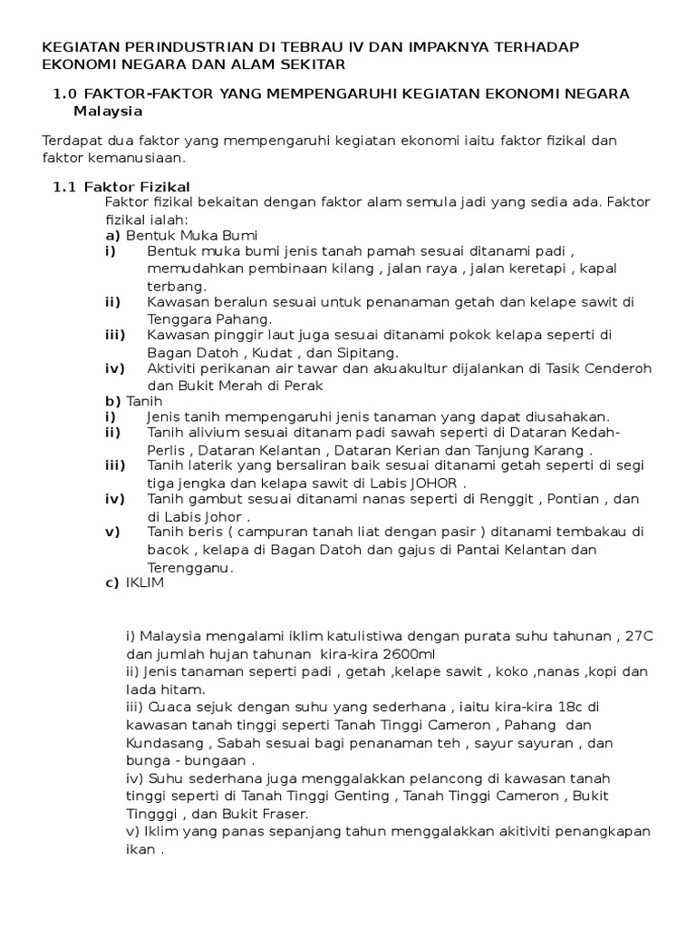 Kegiatan Perindustrian Di Tebrau Iv Dan Impaknya Terhadap Ekonomi Negara Dan Alam Sekitar Pdf